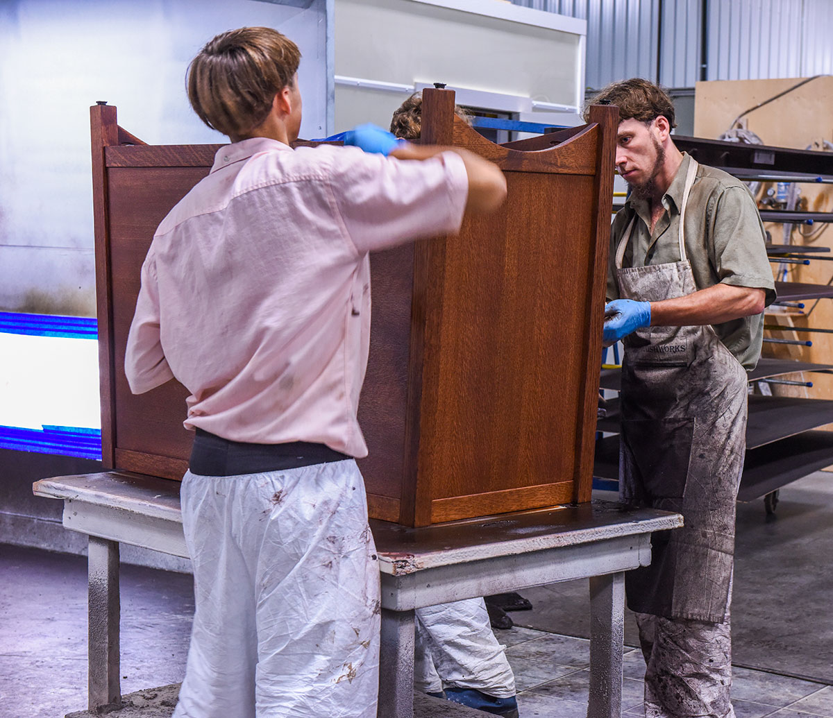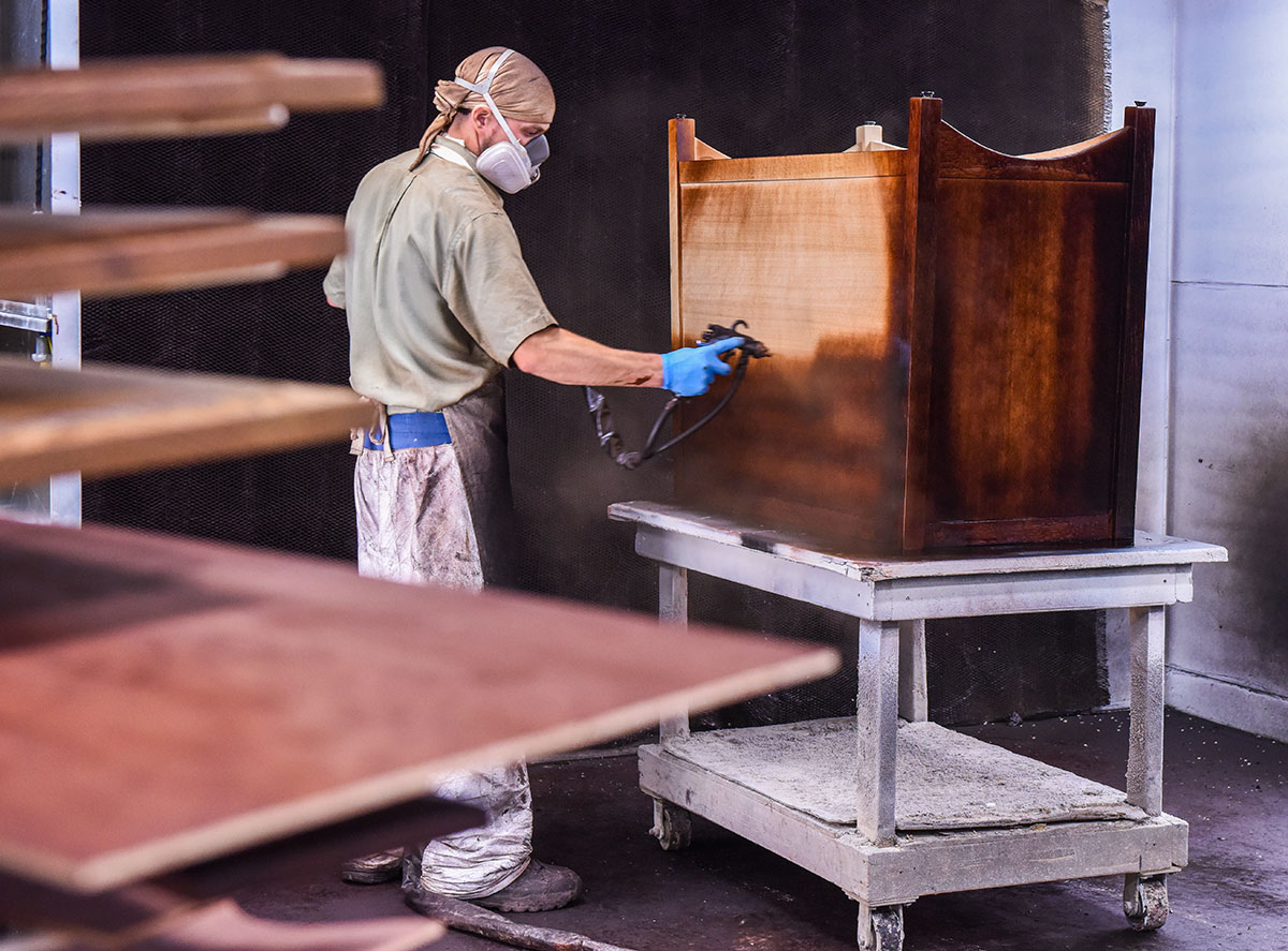 Great care means beautiful results – and that’s what you’ll find in the finishing process of finely crafted furniture. Finishing is done locally by skilled specialists versed in the trade. They carefully sand, buff and polish for a soft, smooth finish. A wide range of options, tints and hues are beautifully applied in the staining; bringing out stunning grain patterns and the furniture’s true face.